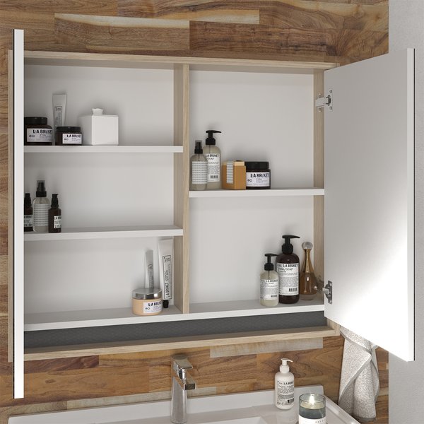 Possui uma prateleira interna, oferecendo espaço adicional para organizar seus itens de higiene pessoal.